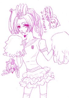 が、すみません、女装です(震)。チア孔明です。昔もやりましたがまたやりました。妹者が今日、野球応援だったそうでチアが云々という話を聞いたらついつい‥‥。