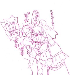 まずはブレイド三国志(妹者が内容を教えてくれました)から。ていっても絵は無双です。ブレイドのネタで赤壁前に「二人でそれぞれ手の平に願い事を書いて二人の字が同じであればその願いは叶うといわれています」ってのがあったんです。