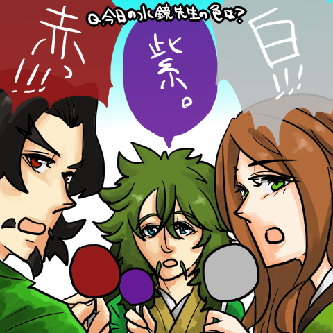 今日の指南な何色かを当てるのが門下生の日常……とか。とうとう水鏡先生をネタに組み込み始めましたよ。しかしイラコンも日曜日までなんですよね。終わってからちゃんとホモネタ出るでしょうか…←
