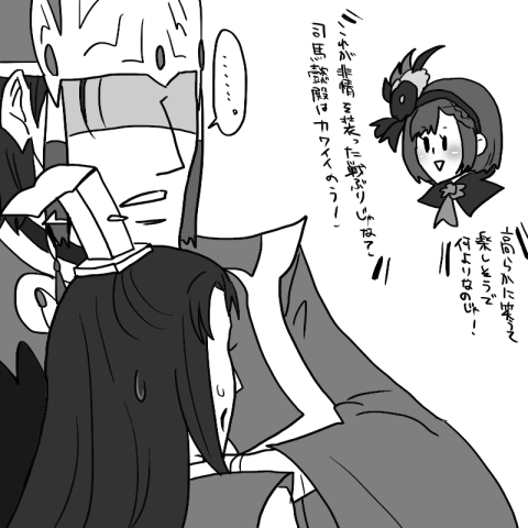 例えばこう、司馬懿さんが孔明を追いつめて「フハハハハハ!」ってテンション上がって攻めているところに、「高らかに笑うて愉しそうで何よりなのじゃ!」とか「これが非情を装った戦ぶりじゃな」ってほむっと納得されたりなんだりしたら、本当にいたたまれないんじゃないかと…。誉められてる司馬懿さんだけじゃなくてちょうど相手してる孔明も同時に恥ずかしくなっちゃうんじゃないだろうかと思うと非常にオイシイと思います司馬諸ハァハァ←
