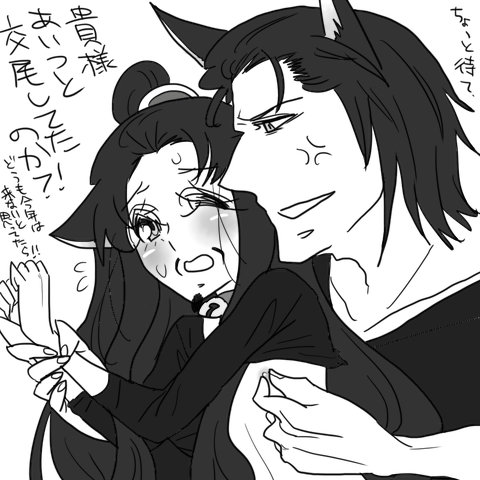 さて添付です。以前、ニャン孔明がネコ姜維くんを筆おろししてあげるハァハァと言っておりましたが、その続きです。割合淡白…かつ、キョーイくんよりも年上なニャン孔明は発情期があっという間に終わってしまうと思うのですが、若いかつ孔明大好きキョーイくんはもっともっと孔明と交尾がしたいことと思います。でも孔明はもう今年の交尾はお腹いっぱいです。でもキョーイくんは迫ってきます。なので、司馬懿さんのところに逃げました↓