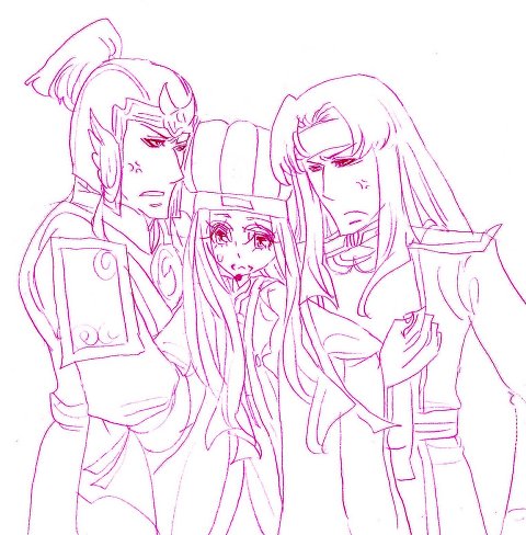 あともう一枚添付です。久しぶりに3、4の髪型な都督が描きたくなったので、いっそ3で瑜→諸←司馬にしてみました↓