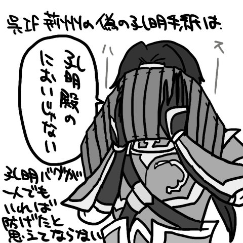 って感じで。孔明の手紙を嗅ぐのは吉川三国志でもあった伝統あるネタです←