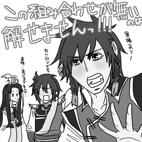 このようなスキンシップを取るためのポジションですね!てかこの位置に立たれたら、ついついこうしたくなってしまいますハァハァ!が、恐らくこのようなスキンシップを取ったあかつきには、周囲から全力で非難されることと思います。しかしなんと言いますか、付き合わされてしまった賈ックスパロウが憐れすぎます…(でも実は賈ックスパロウも太子の国にいるんで(当時モブ)なんと奇跡的にここにいる全員太子の国メンバーになのです/激震)