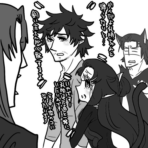 というわけで添付です。添付は久々にニャン孔明です。しばらく家(都督ん家)に帰らないで徐庶さん家で遊んでいたニャン孔明ですが、最近孔明を見ない…と探しに来た都督と司馬懿にデート現場を目撃されてしまいました。