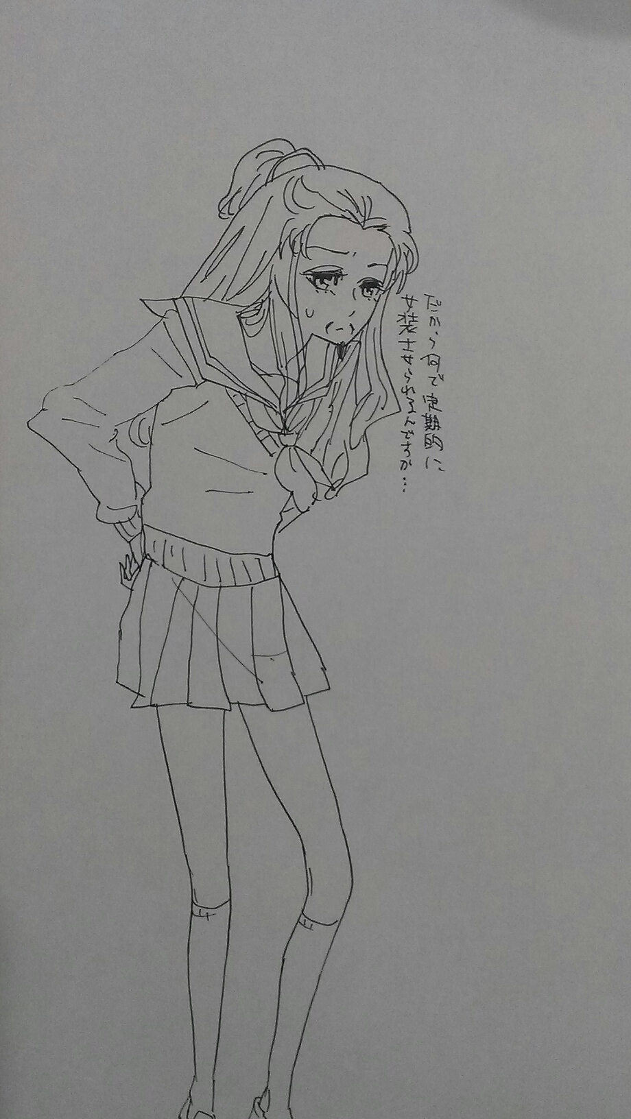 というわけで今日も手描き添付です。孔明にセーラー服を着せたかったんで適当なセーラー服を着てもらいました↓