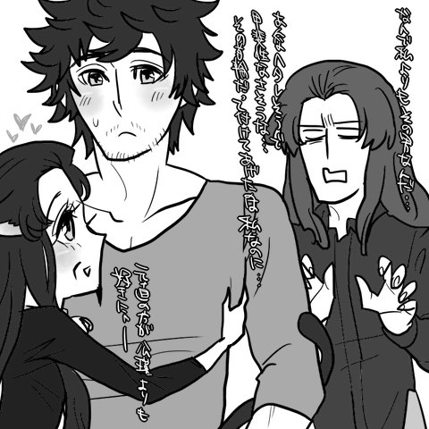 というわけで添付です。孔明のモンハンの腕前が神的というのは、モンハンネタやる時にでてくる設定ですが、その孔明にモンハンを教えた(というか初めてモンハンやろうって誘った)のは徐庶だったというネタを新たに考えたのですが、らくがきの途中でなぜかシフトチェンジしてしまってただただいちゃついてるだけの徐孔になってしまいました↓