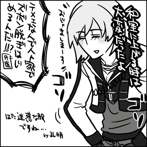 さて今日の日記はどうしよう…めんどうなネタはあるけど(長くなりそう、の意)今からPCを点けるのも億劫……と思っていたら先日ちょうどスタイリッシュ鬼太郎(バイトのコーメイくんコーメイ)ペロペロ状態になって書きなぐってついったに投下したコーメイくんがいましたのでそれをここに投下してみます↓