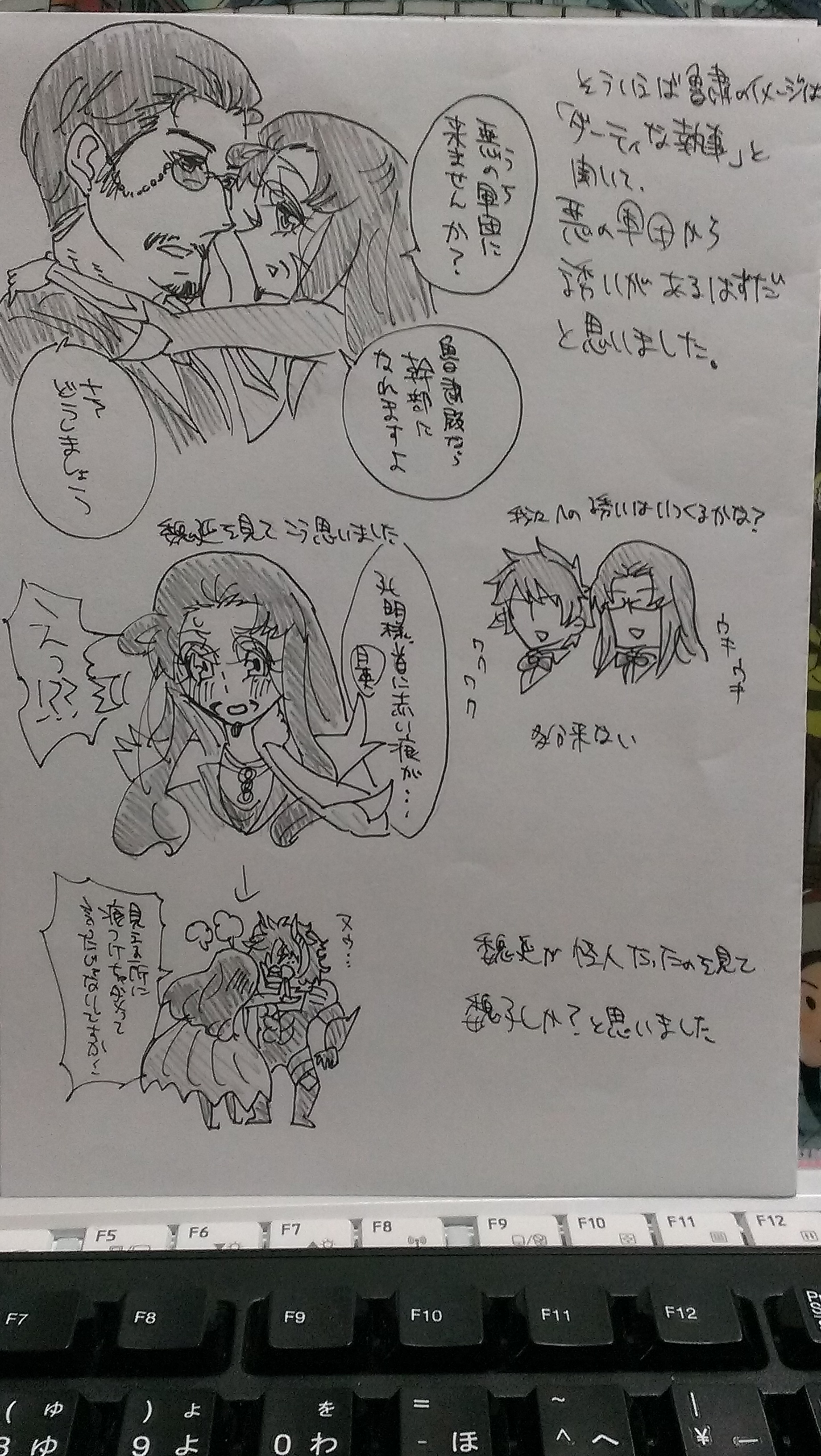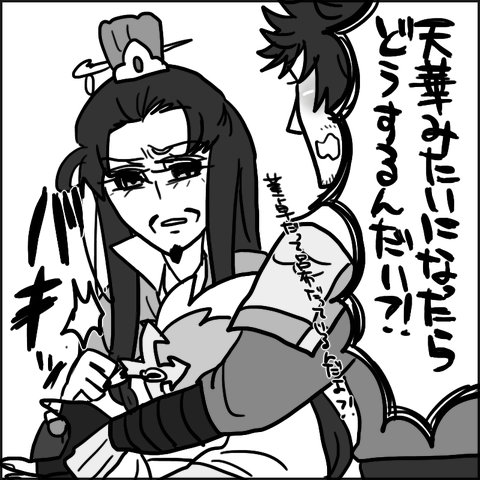 ↑実はこのネタすごくやりたいです。趙雲(ジンレッド)×孔明(悪の総帥)が一つ屋根の下で性活してるネタです。孔明はチョン様がジンレッドだって気付いてるけど、チョン様は孔明が敵の総帥だとは知らないで付き合ってるっていう。どうでもいいですが左下の「まさか人形?!」って北斗のネタです。通じる方だけ、笑ってやってください…。