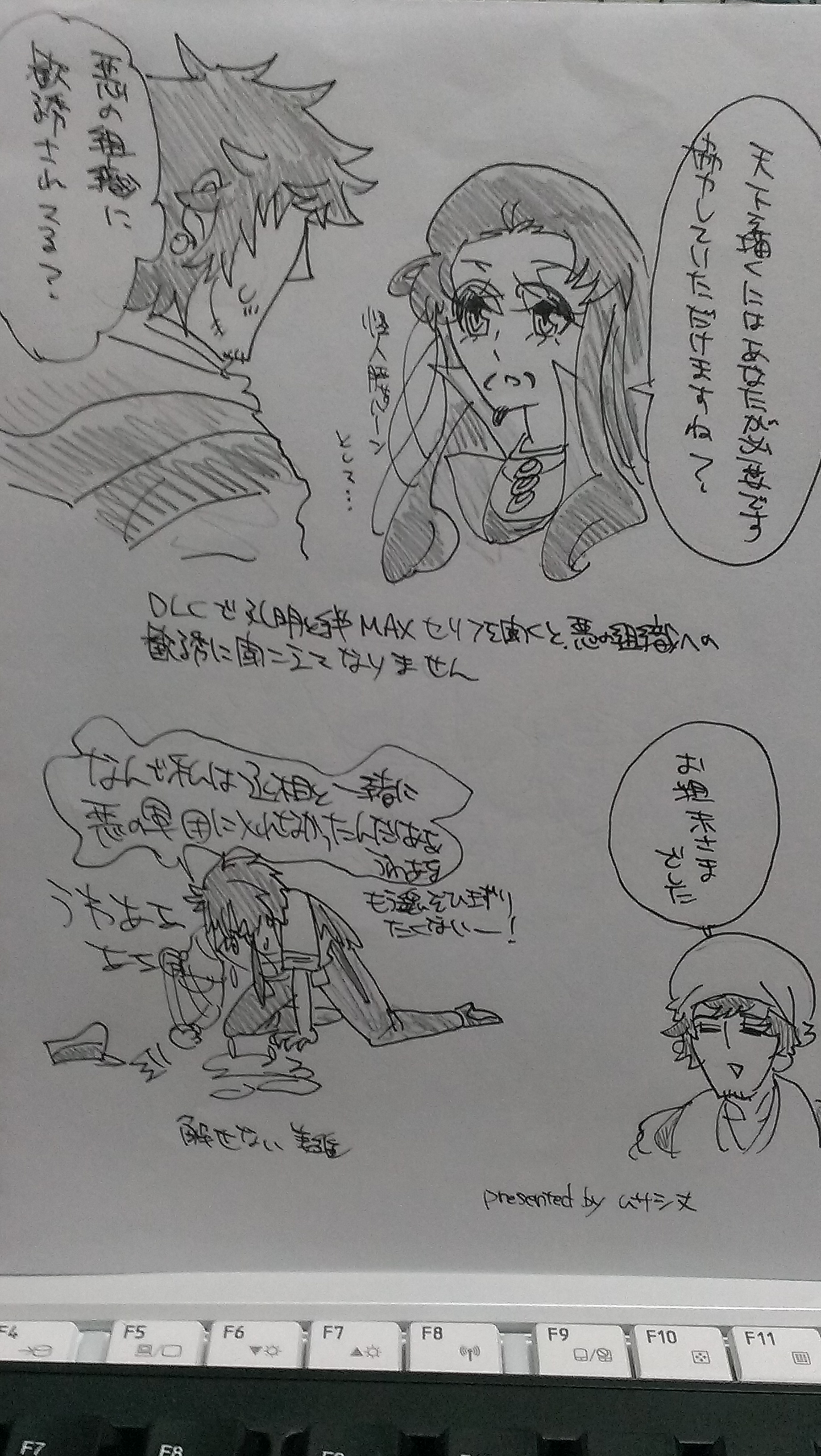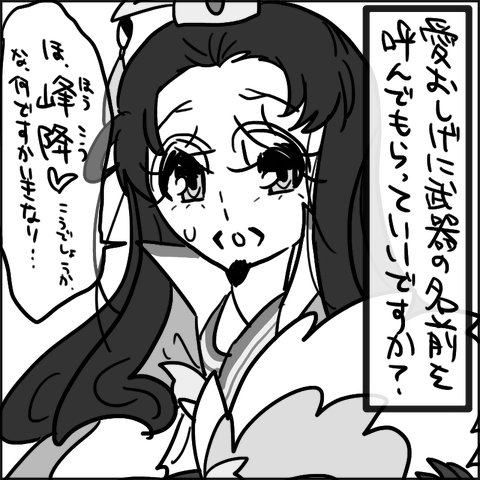 というわけで添付です。添付は、孔明のユニーク武器の名前ネタ四コマです。孔明のユニーク武器の名前は前にも一回ネタにしてるんですが(3月27日に)、改めてしっかりネタにしてみました↓