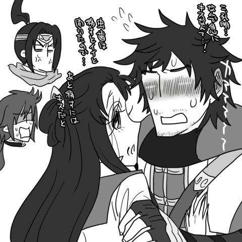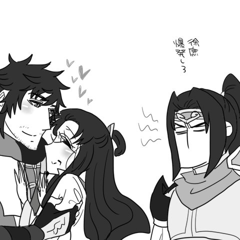 趙孔がらぶらぶで、何故か見せつけられてしまう徐庶さんはもう面倒くさいんで溜め息です。徐庶さんだって孔明のことが好きですが、限りなく兄弟子として弟弟子が心配…というようなお兄ちゃんベクトルでの好きです。やましい気持ちが全く無いと言ったら嘘かもしれませんが、限りなく0に近い感じです。何故なら孔明が徐庶さんへ恋愛ベクトルを持っていないからです。
