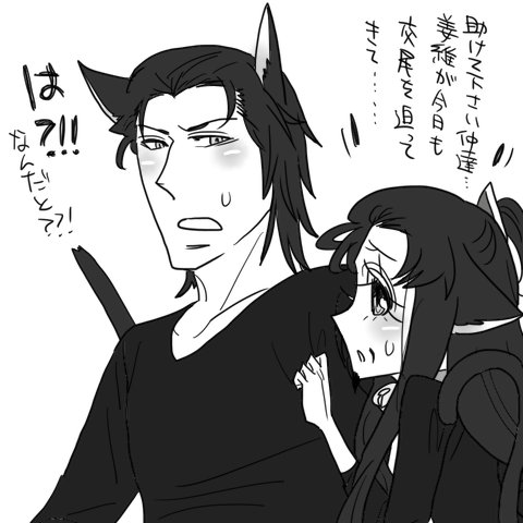 さて添付です。以前、ニャン孔明がネコ姜維くんを筆おろししてあげるハァハァと言っておりましたが、その続きです。割合淡白…かつ、キョーイくんよりも年上なニャン孔明は発情期があっという間に終わってしまうと思うのですが、若いかつ孔明大好きキョーイくんはもっともっと孔明と交尾がしたいことと思います。でも孔明はもう今年の交尾はお腹いっぱいです。でもキョーイくんは迫ってきます。なので、司馬懿さんのところに逃げました↓