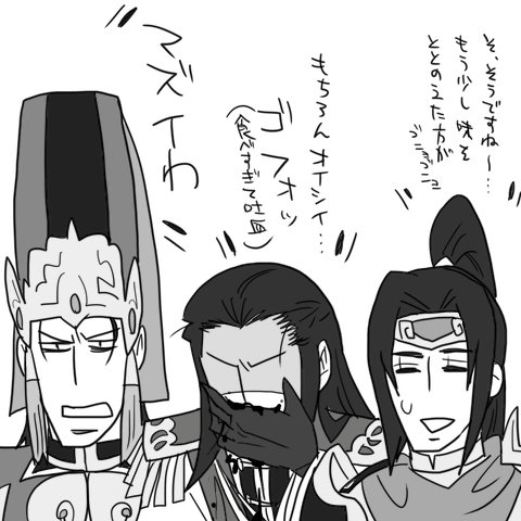 とりあえずネタとして。孔明の手料理が非常に不味かった、としたら。そしてそれを数名の攻ズが食べてみたようです。とりあえずお三人の感想↓
