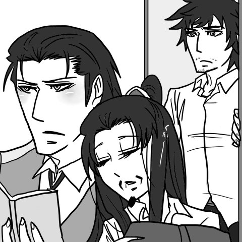 本を読んでいたらついついうとうとしてしまってそのまま司馬懿さんの肩の凭れて眠ってしまった孔明です。で、徐庶さんたらそれを目撃してしまったと。いっつも眠そうな目ばっかりしてるのに流石にこの時ばかりは目を見開いてくれましたよ(当社比)!