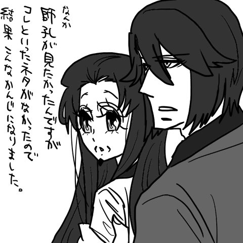 さて汗でべたつく中添付です。司馬懿さんVS徐庶さんの妄想もしてたんですが、どうにも急に師孔が摂取したくなりまして(…)。しかし特にネタも浮かばない、でも師孔が見たーいーというわけで何とはなしに師孔です↓