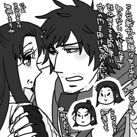 でもまァうちの孔明がこんなツンデレっぽい顔する相手なんてね、今のとこモアイさんくらいしかいないんでね…いやあと両想いな瑜諸の時もやってくれる顔ですけどね(両想いになると途端にツンデレになる瑜諸の孔明)でもデフォルトツンデレは対モアイだけでないかと(ごにょごにょ)