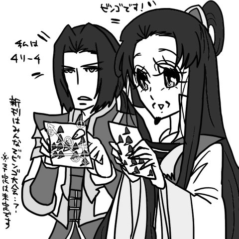 皆さんこんばんは、ムサシ丈です。ふと新刊のネタっぽいものを思いつきました。ずばり、「太子の国でビンゴ大会」です。太子の国のメンバーがひたすらビンゴに興じます。………そんなんで保つんかって感じですよね、丈もそう思ってます(震)。なのでまァ仮定の話として、とりあえず新刊の候補としてビンゴ大会を…。とりあえず打ってみた具合になると思います、ハイ。保ちそうならそのまま新刊に、保たなさそうだったらとりあえず後々拍手でやろうと思います。しかし早めに新刊ネタの方が固まってくれて余裕ができたらそれこそ徐庶祭りのためにカニコメだけで一冊作りたいななんて思ってなくもないです…。太子の国で徐庶さんいるからこれで徐庶祭りに…っていういのがちょっと心苦しいというのもありまして、薄~~っくても、コピー本でも、無料配布でも、何でもイイからとりあえずカニコメで一冊あったほうが心おきなく徐庶祭りに参加できるかと思うんです。
