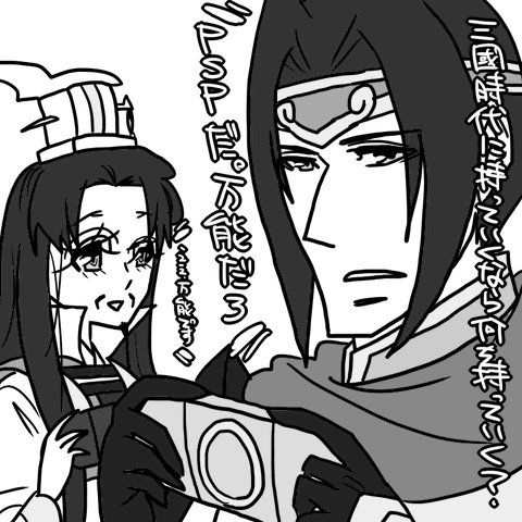 そういえば最近本当徐庶さんばっかり描いていたのでちゃんと昭くんが描けるか非常に心配です。↑で描いてるじゃん、って感じですが、ちゃんと目ェ開けた昭くんが描けるか非常に心配です…。普段でも昭くんはたまに描けなくなることがあるのに(ちなみに描けない時にネタで使う場合は↑と同じように目を閉じさせる方向で描くことで逃げるのが多々)、ここのとこ本当しばらく描いてませんでしたからね…、バランス感覚がどこかに行ってそうで怖いです…(激震)