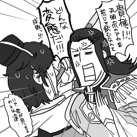 エ…?司馬懿さん…?みたいなネタですが、多分司馬懿さんは本気です。孔明の安眠腕枕になるのは、攻ズの夢です(笑)