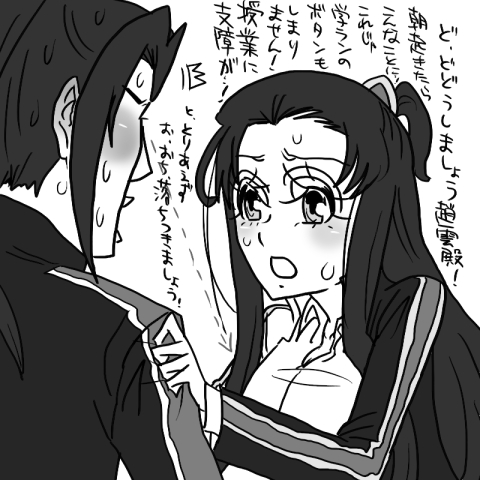 というわけで今回のにょた孔明は巨乳です。女子になって混乱した孔明がチョン様のところに行ったようです↓