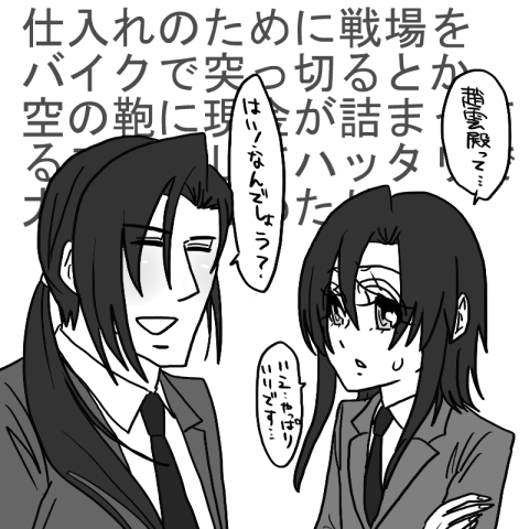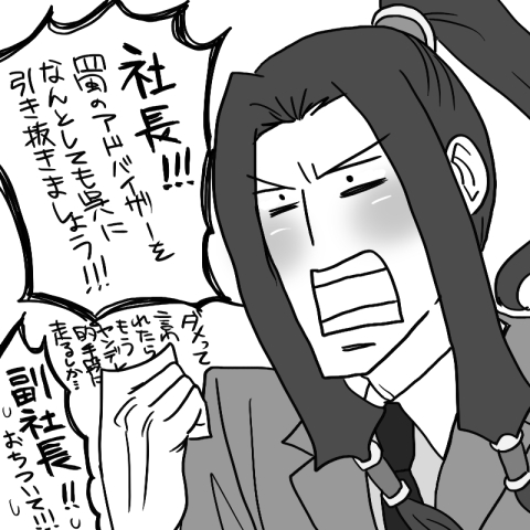 というわけで添付はその本の会社パロでの瑜→諸です。株式会社呉の都督さんは有限会社蜀のアドバイザーである孔明さんを引き抜きしたいようです。
