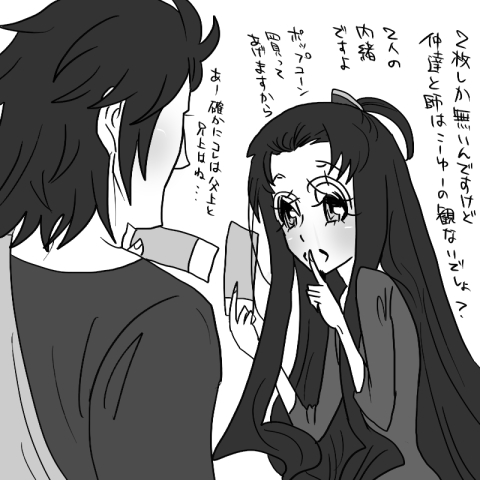 というわけで早速添付に参ります。当初、趙孔で妄想した映画のチケットネタ(孔明が何となしに応募したキャンペーンで映画のペアチケットが当たってしまってどうしようかなと思って、とりあえず近くにいたからチョン様に「一緒に映画観に行きませんか?」と誘ってみた。というネタ。密かに孔明らぶなチョン様はもう嬉しくて仕方ないんだけど、孔明にリードされちゃってる感でこれでイイのかと葛藤してみる。という何とも言えないネタ)を、サム様宅の「しばけ」を、現パロにして、且つ息子ズも随分成長した状態で妄想するという僭越を超えた大暴挙をしてしまったのですが(そんな暴挙にも快く「やっちゃってください」と言ってくださって本当にありがとうございます…!)、それが本日の添付です。