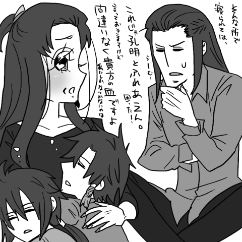あと、こういつもいつも「しばけ」にばかり頼ってるのもアレかと思いまして、過去にネタ出しした瑜諸家族妄想もしてみました。瑜諸が夫婦で姜維と陸遜が息子、というものです。色々妄想してたらもうどうしようもないほどカオスネタになってきました(激震)。とりあえず息子二人は孔明にばっかりなついてそうで、都督も都督で未だに孔明孔明うるさいという(酷ェ)。しかもネタの都合上、孔明がキョーイとガリクソンを産んじゃってたりしてます(ヒー)。しかも無駄に現パロ状態という(激震)