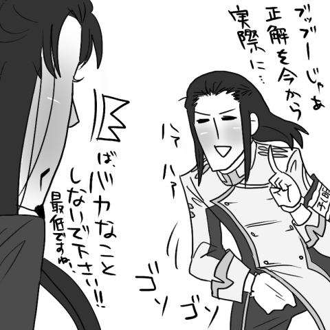 皆さんこんばんは、ムサシ丈です。昨日はイイ夫婦の日でしたが、本日はイイ兄さんの日でしたね。というわけで本日の添付はイイ兄さんの日な添付です。昨日とは違って兄さんキャラになれる人は限られておりますのであみだくじではなく独断と偏見で描きました。二枚ありましてとりあえず横光徐庶と孔明です↓