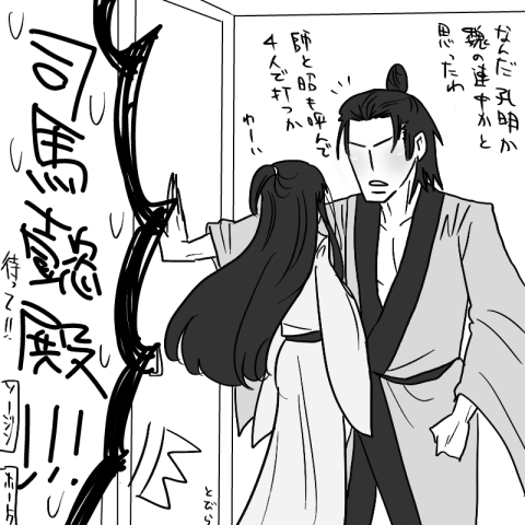 というわけで添付です。仮病中の司馬懿さんのところに誰かが訪ねてきたようです、な3コマ漫画(モドキ)です。