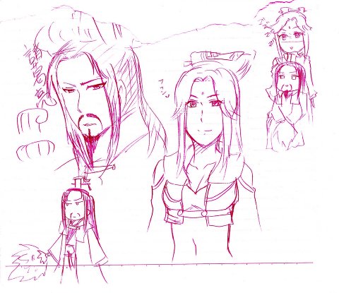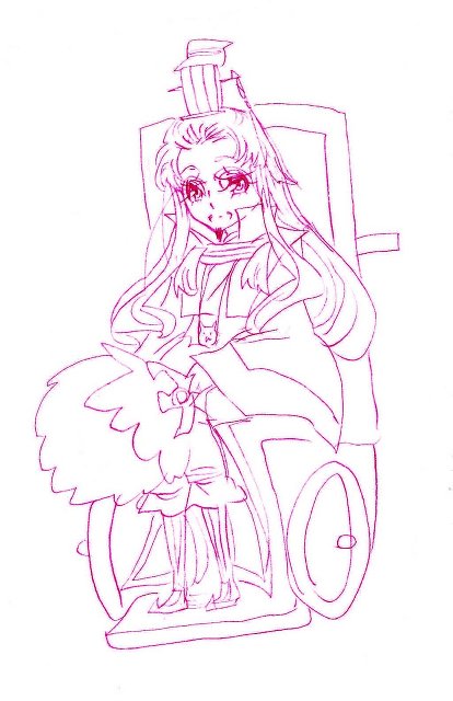 ハイ。さてこれからがいつも通りの丈の描いた添付です。友と落書き中、孔明が車椅子に乗ってるって話になったので、車椅子孔明でも描いてみました↓