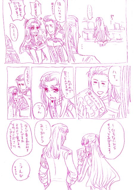 あと1ページまんがを一枚。ちなみにツンデレ孔明な瑜諸です。「孔明が鈴カステラ欲しがってたらどうする?」というネタ振りから生まれたのですが、何かただのイイ話になってしまいました↓