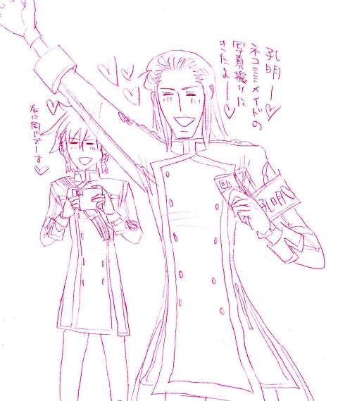 都督(及びガリクソン)の制服の構造がわかりません。特に前のあの部分が。最初描いた時はシェフ?ビストロ?とか思ったのですが、どう着てるのか分からん!って思ってたら急に孔明に制服の上着を掛けてやるって出来るんだろうか?と、そこにたどり着いてしまったわけです。このビストロな制服は一体どうなってるんでしょうね?まァ、最悪の場合でも都督がドンマイって言われるだけで終わるんでまァイイでしょう。確実に孔明に上着を掛けてあげることができる奴は他にいますからね(チョン様とかキョーイとか司馬懿さんとか)!