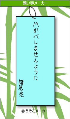 ちなみに最初は「孔明」でやったのですが、願い事を見た時に「諸葛亮」でいこうハァハァ!と決意。そしてその諸葛亮の願い事がこちら↓