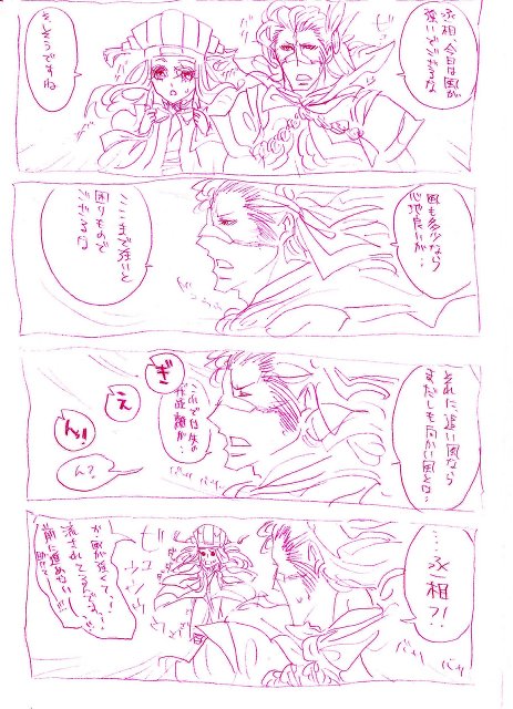 というわけで添付です。あまりの風の強さにこんな4コマを考えてしまいました↓