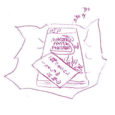 モンハン3rdはネット経由でもできるというネタでした。下書きのつもりで描いてたのですが、まァいいかと思ってこのままうpしました。気が向いたらPCの練習ということでPCでキレイに描くかもしれません(笑)