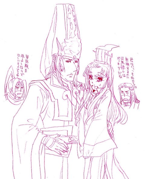 えー、こんな甘酸っぱい司馬諸描いておきながら何ですが、 設定資料集の司馬懿さんのセリフ無双乱舞2「逃がしはせんぞ」とEX攻撃「仕置きしてやろう」を見ていたら何かついつい、それっぽい司馬諸を描いてしまいました(震)