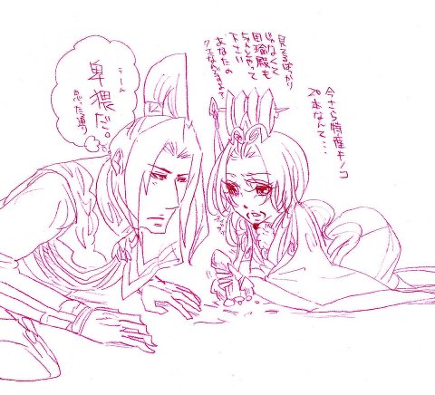 どんなシチュかは不明。多分例によって呉に来い的な説得してるとこだと思います。自分で描いて解説?しといて何ですが、説得って普通こんな図ではやりませんよね(笑)。瑜諸だからこその説得の図ということで‥。