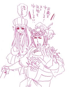 緊急したというか孔明を疑ってるっぽい魔王です。本来樊孔ってこんな感じですよね(たまに描きたくなる)
