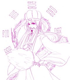 3孔明とその周りに龍と八卦があります。とりあえず八卦に関してはちょっと時刻と八卦のページを交互にみながら描いたものなんで八卦の位置関係に間違いがある可能性が高いですι