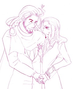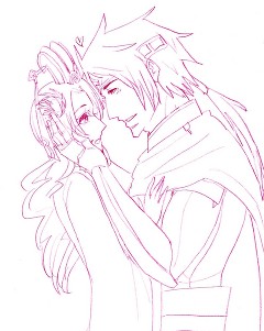あともう1セット添付。覇王ルートに入った所で出たムービーで項羽がグッキー(虞姫)を片腕で抱えて立っていたのを観て、丈の中の都督が「再現したい!」と訴えてきたのですが都督にはあの再現はムリと判断したので樊孔で再現してみました↓