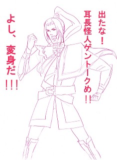 ちなみに↑の都督、見ようによっては「出たな!耳長怪人ゲントークめ!よし、変身だ!」みたいに見えなくもないって妹者に言ったら「墨汁戦隊墨レンジャー(c)日和)の赤?」と言われました。