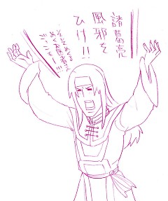なんだか諸葛さんのこの瞬間が好きです。なのでコレを描くために様々な角度から諸葛を視k‥じゃなかった観察しました。