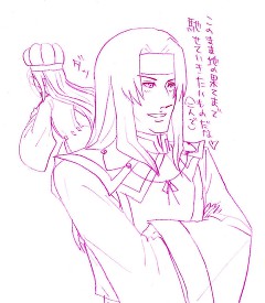 さて添付ですが、3万打企画のご意見で寄せられた「執事パロ」を見て、ちょっと描きたい衝動に駆られたもんですから描いてみました。