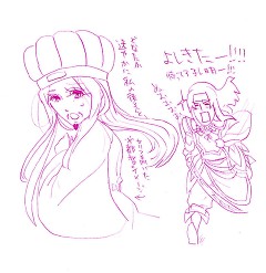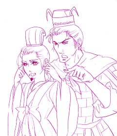 一枚目は例の「地の果てまで…」の図です。ちなみに今日はちゃんと設定資料を見ながら都督の衣装を描きました。