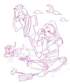 騎士は賢者さまを護るために、よなべしてアイテムを作ることができます。そのなかに賢者さまそっくりの「かかし」があります。