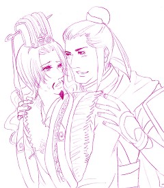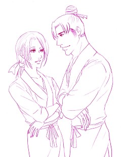 で、魚水に萌えた丈が特に何も考えず(源氏物語っぽく描こうとは思っていない)見切り発車で描き始めたのが本日の添付です。
