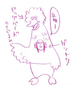 特に何も考えずに…というよりうろ覚えでビッグバードを描けるものかという丈のチャレンジ精神からこんな風になってしまったゲントクさんです。ゲントク感を出すのにモミアゲを出してみたら一瞬都督っぽくなっちゃって、それを回避するのに福耳を描いてみました。