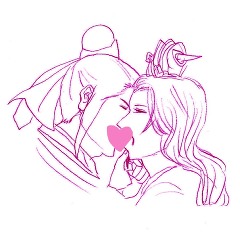 調べてみましたがチューしてる絵はそんなにありませんでしたが、かわりにふたりがいちゃついてる絵が腐るほどありました。