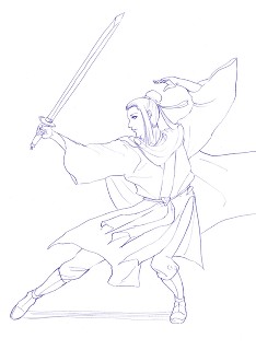 これは、高校の漢文の授業で「鴻門の会」をやった時に先生が配った、本宮ひろ志先生の漫画の張良先生を丈が描いてみたものです。
