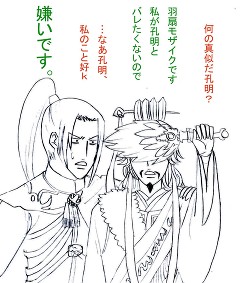 孔明を溺愛する管理人による萌えと落書きを雑然と書いてます(ほぼ毎日)。初めての方は「はじめに」をどうぞ。キャラ崩壊注意。